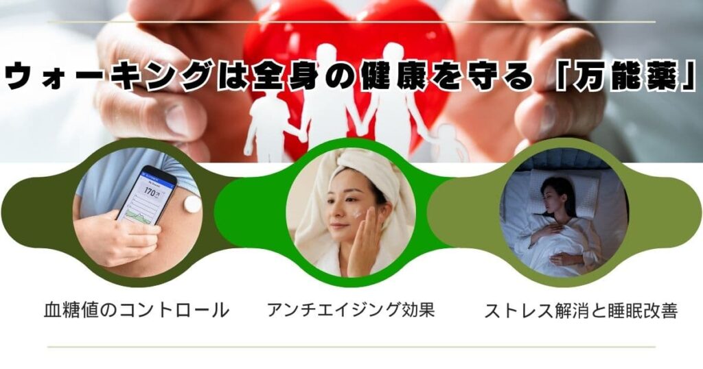 ウォーキングによる適度な疲労は、ストレス軽減や睡眠の質向上にも役立ちます。